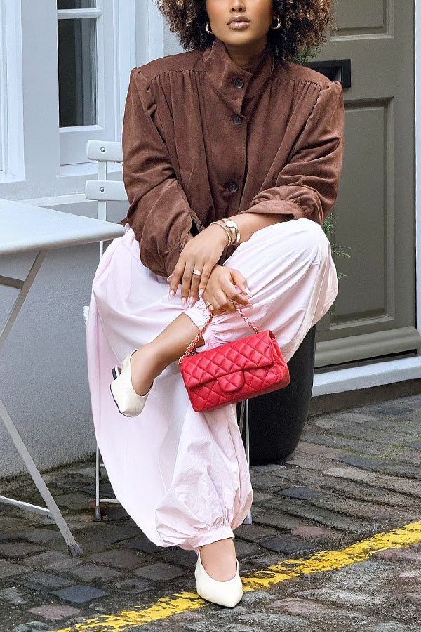 Stay on trend this season in our new retro, funnel neck outerwear. We especially love the solid color fabric and think this piece will be a new favorite in your closet!