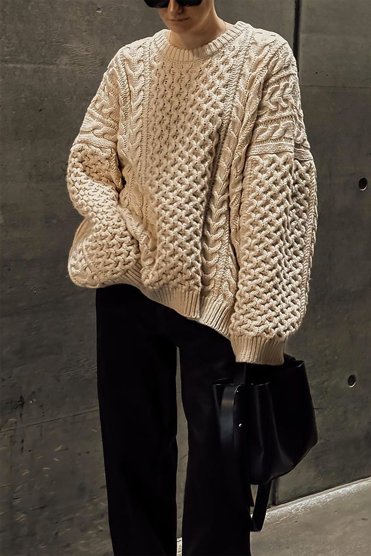 Lazy Style Loose Cable Knit Long Sleeved Sweater*