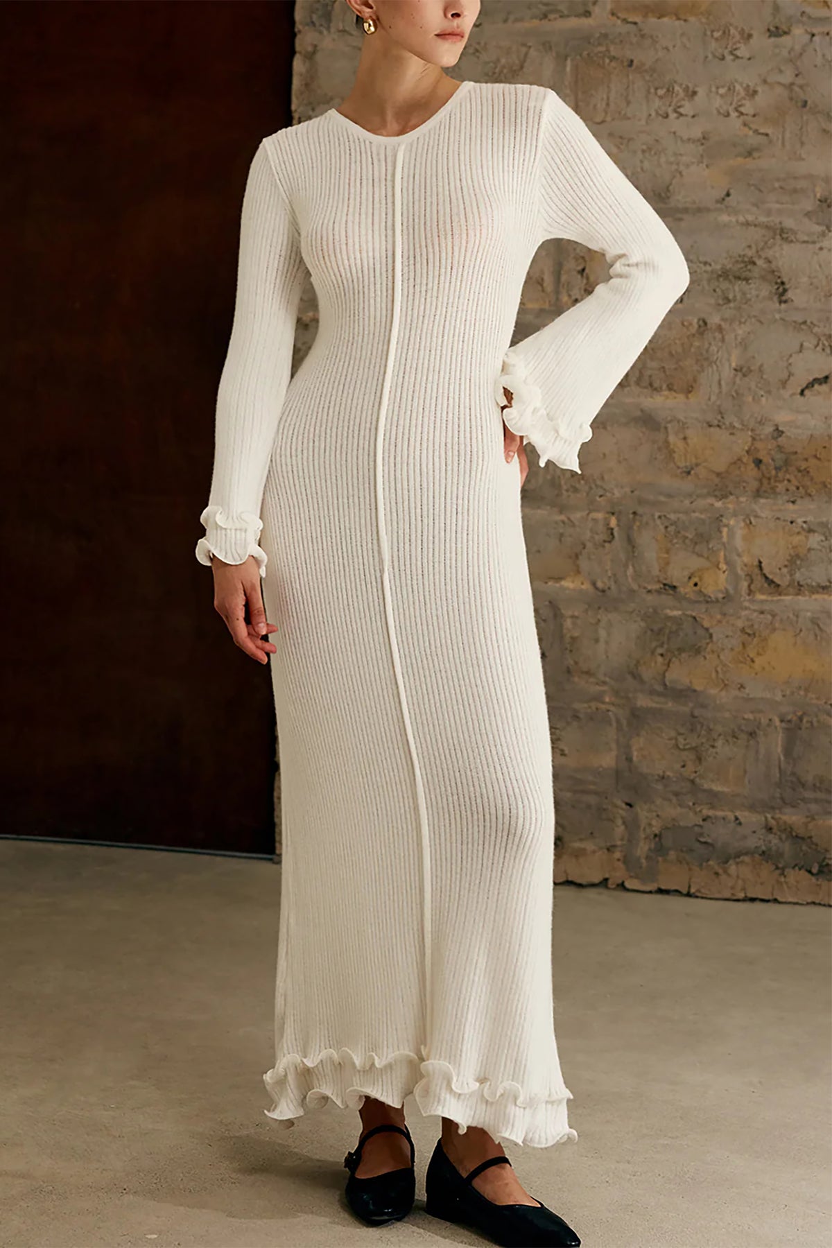 Chic Pleated Wave Edge Long Sleeved Knit Dress*