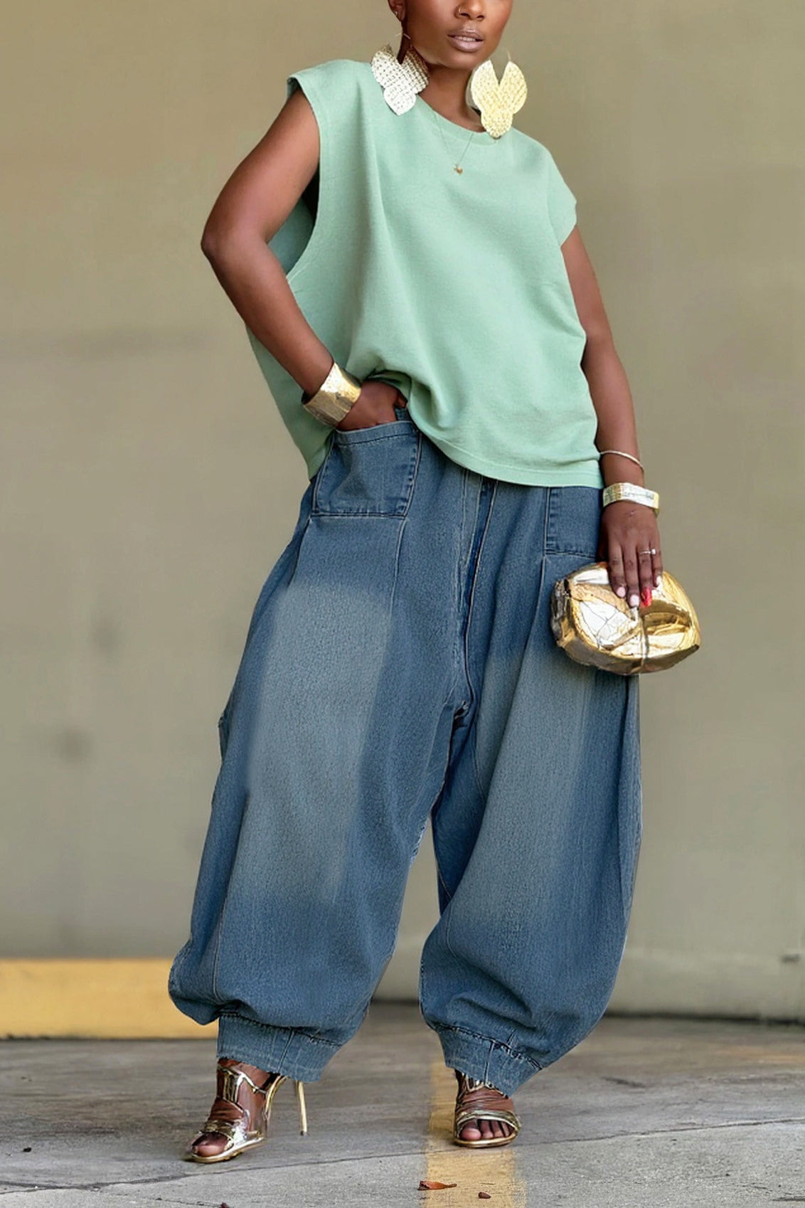 Street Loose Bleached Harem Jeans*$46.99 USD