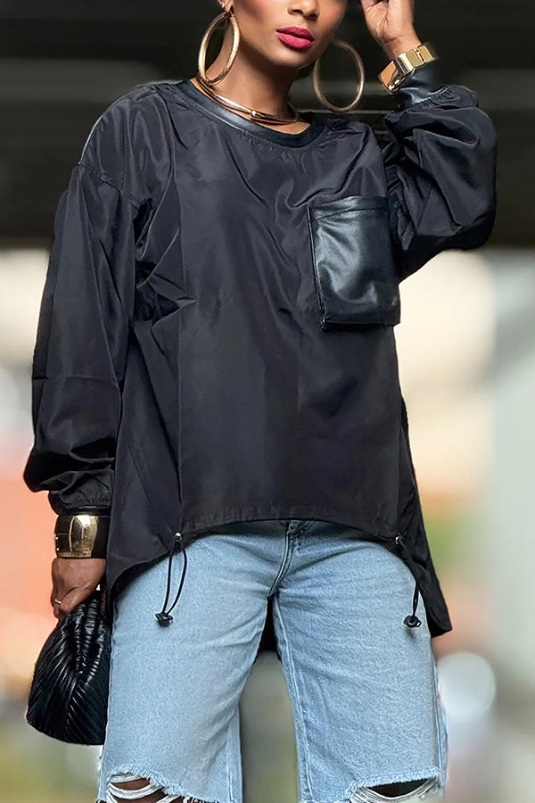 Stay on trend this season in our new relaxed, round neck top. We especially love the patchwork fabric and think this piece will be a new favorite in your closet!