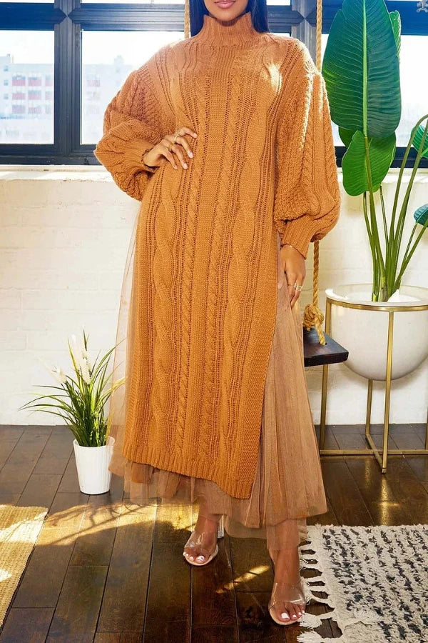Steal the show this season in this fabulous, classy set. Thick enough to keep you warm. soft enough to keep you cozy. This must have set features turtleneck top with soft ribbed thick fabric, long sleeves, side split with matching color tulle skirt with stretch waist.?