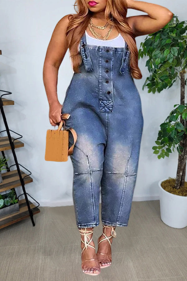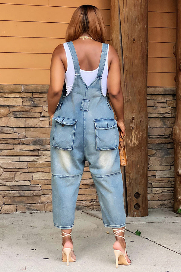 / BEST SELLER / These super hot distressed denim jumpsuit?features a light weight stretch denim fabric, distressed detail, pockets, straight legs, finished with a front button.This stylish denim jumpsit is perfect for any chic fashionista!