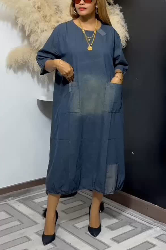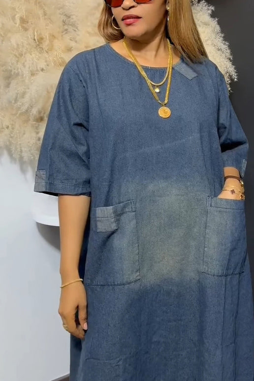 Stay on trend this season in our new casual, round neck dress. We especially love the patchwork fabric and think this piece will be a new favorite in your closet!